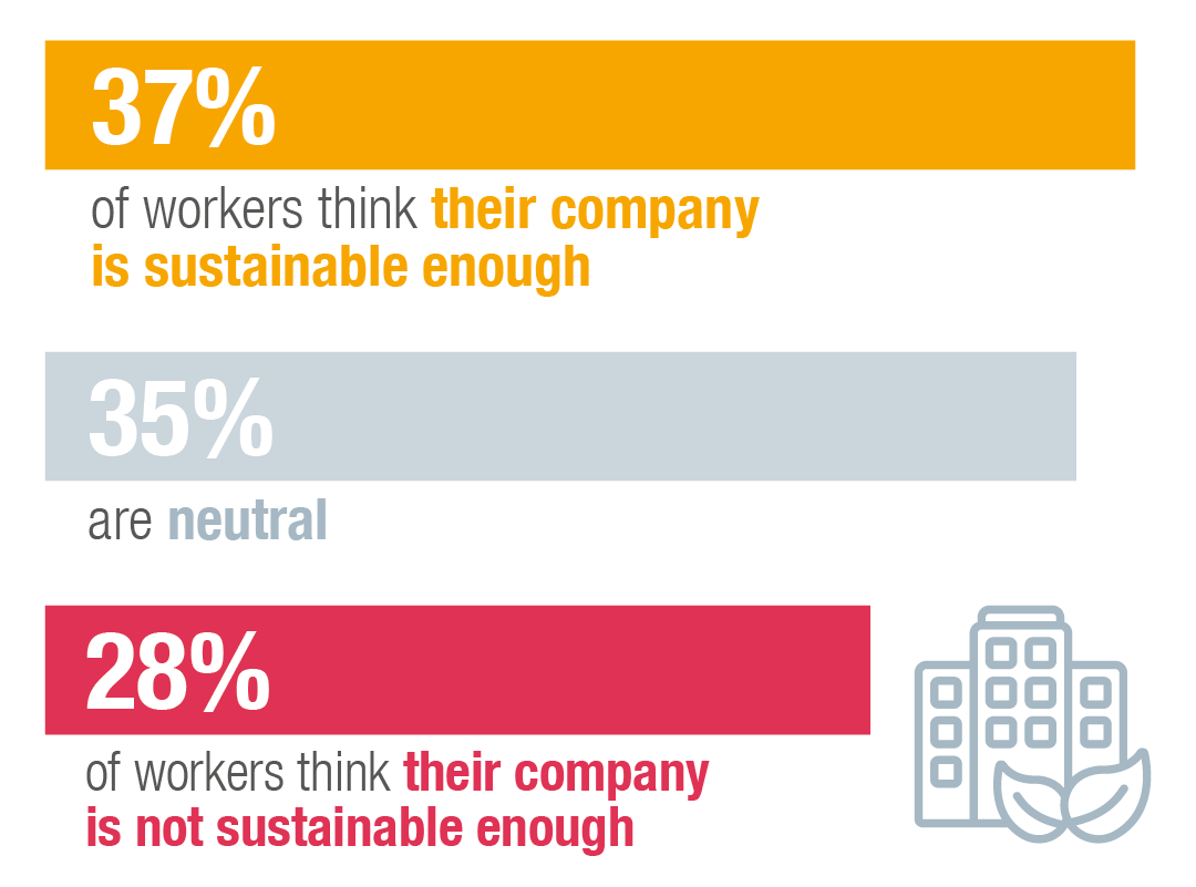 For all the talk of the important role that sustainability can play within recruitment, evidence suggests that many companies still have work to do in this area. In reply to our survey, about four in 10 (37%) of all respondents agreed that their company was “doing enough in the sustainability space”, while three in 10 (28%) disagreed. This is something of a mixed response, suggesting that many sustainability initiatives could certainly be strengthened.